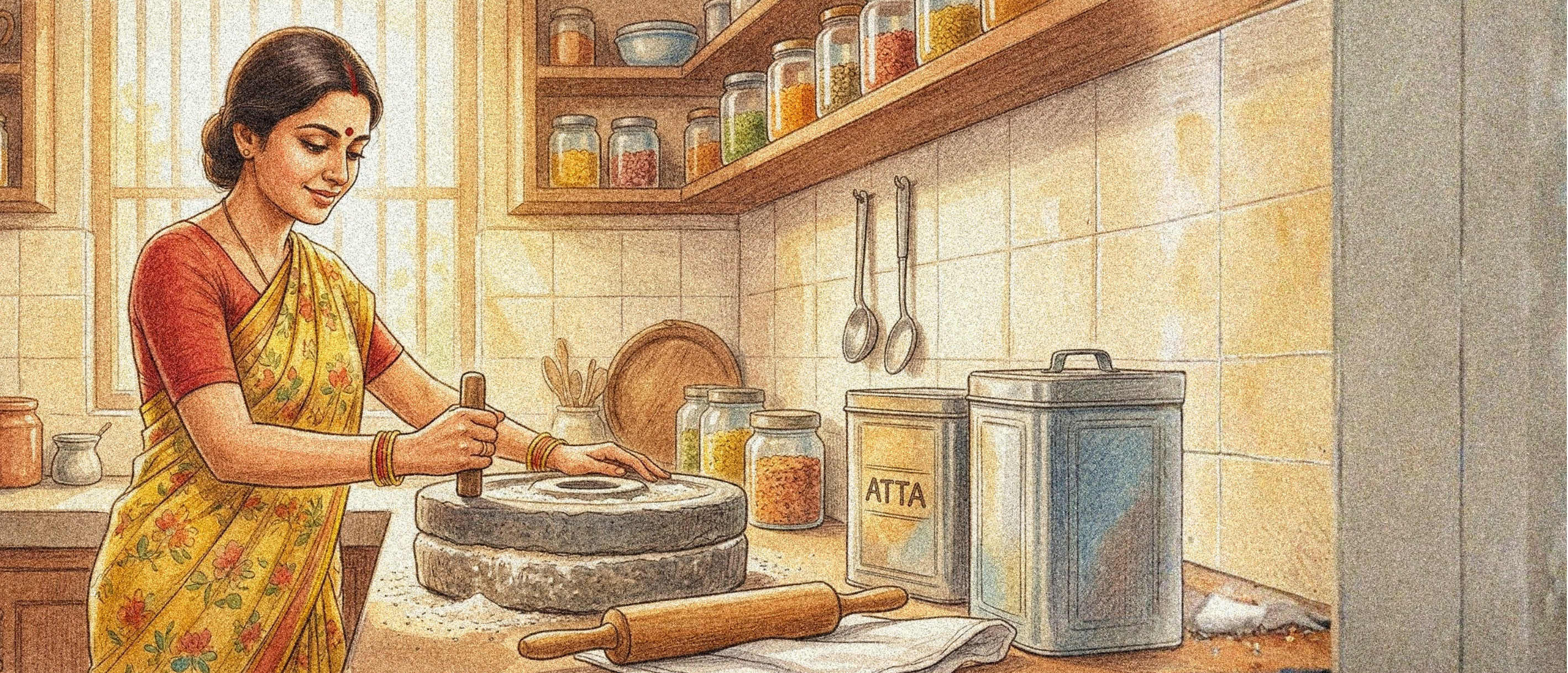 We buy the grains and grind our own atta, besan, jowar, raagi. Packet atta is often adulterated.